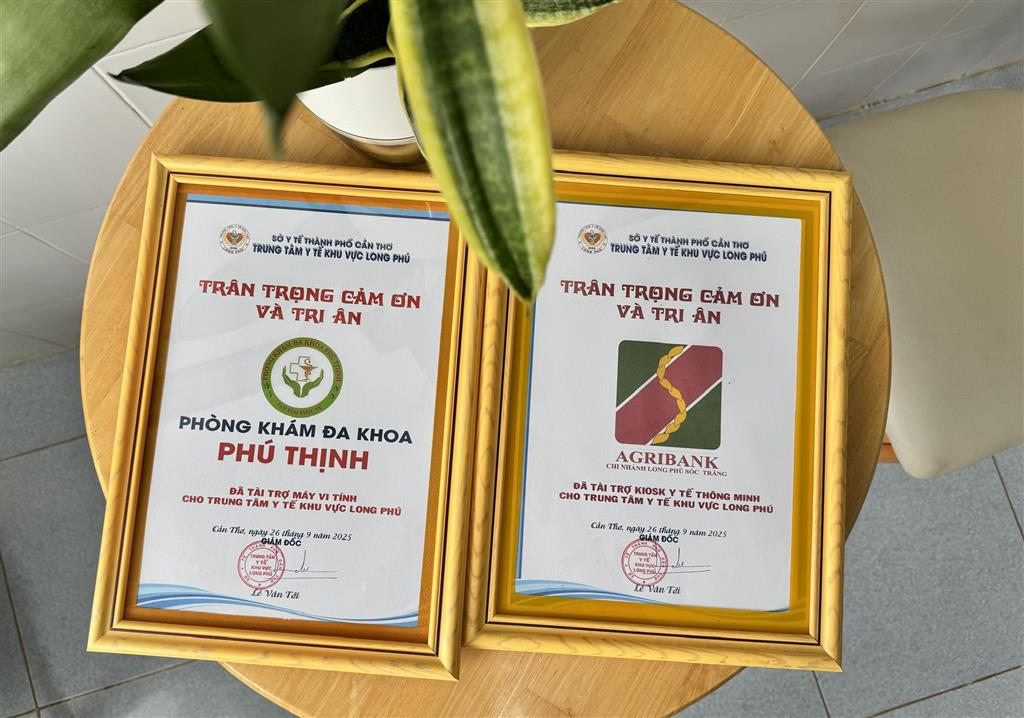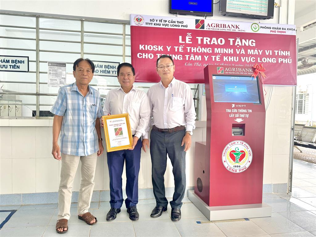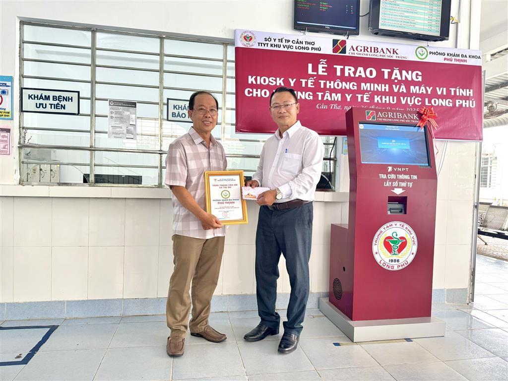 Trung tâm Y tế khu vực Long Phú tiếp nhận kiosk y tế thông minh và máy vi tính do Agribank chi nhánh Long Phú Sóc Trăng và Phòng khám đa khoa Phú Thịnh trao tặng.