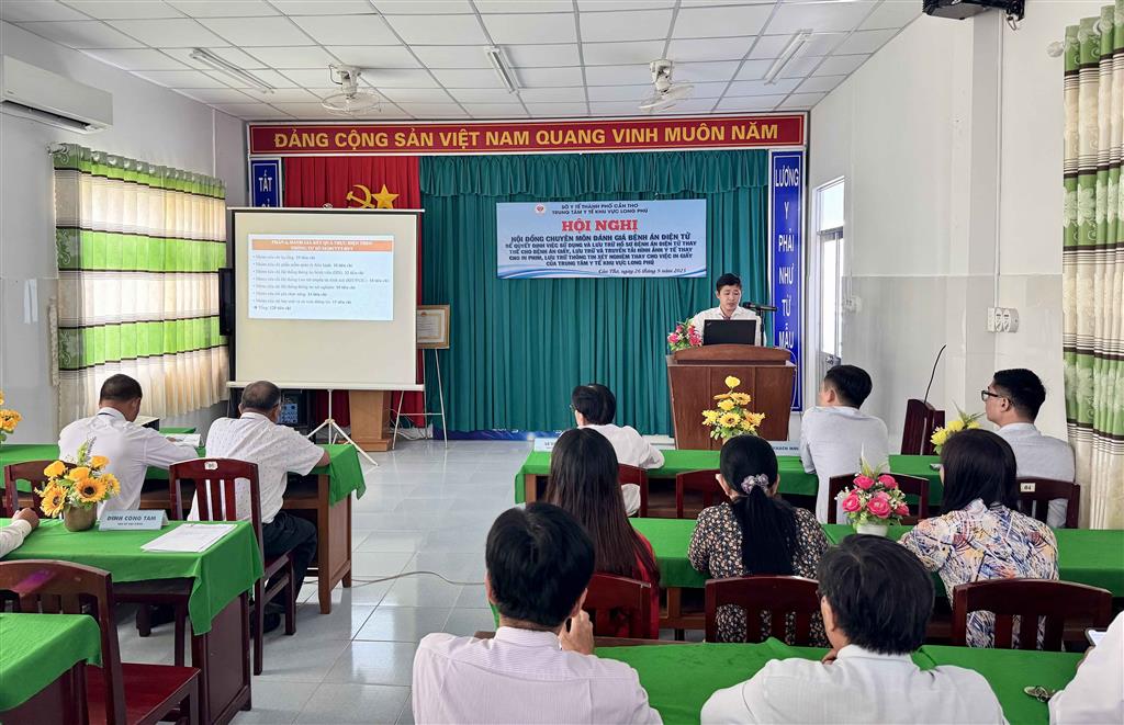 Tại hội nghị, bác sĩ Đinh Công Tâm, trưởng phòng Kế hoạch - Nghiệp vụ - Quản lý chất lượng giới thiệu, trình bày vai trò của ứng dụng công nghệ thông tin và chuyển đổi số trong khám, chữa bệnh; Báo cáo hiện trạng ứng dụng công nghệ thông tin và triển khai hồ sơ bệnh án điện tử, bao gồm: Sự cần thiết triển khai hồ sơ bệnh án điện tử; Giải pháp và kết quả đạt được, mức độ đáp ứng của phần mềm theo Thông tư số 54/2017/TT-BYT và Thông tư số 13/2025/TT-BYT; Giới thiệu chức năng của phần mềm quản lý khám, chữa bệnh và thực hiện các tác vụ theo yêu cầu của Hội đồng; Báo cáo kế hoạch và các giai đoạn đầu tư công nghệ thông tin tiếp theo…